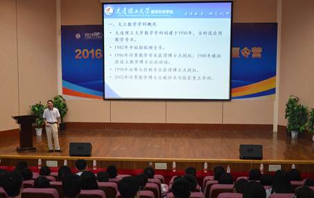 7月9日上午,2016年全国优秀大学生数学学术夏令营在研究生教学楼报告厅正式拉开帷幕。经过报名选拔,来自全国各地二十余所“985”及“211工程”重点高校的五十多名营员在数百名报名者中脱颖而出,出于对数学专业的热爱和对大工的向往让他们来到了这里,开始了为期三天的夏令营体验。437ccm必赢国际首页欢迎您院长卢玉峰教授、研究生院副院长张吉礼教授、437ccm必赢国际首页欢迎您副院长李崇君教授、副院长于化东及学院各研究所所长出席本次开营仪式。